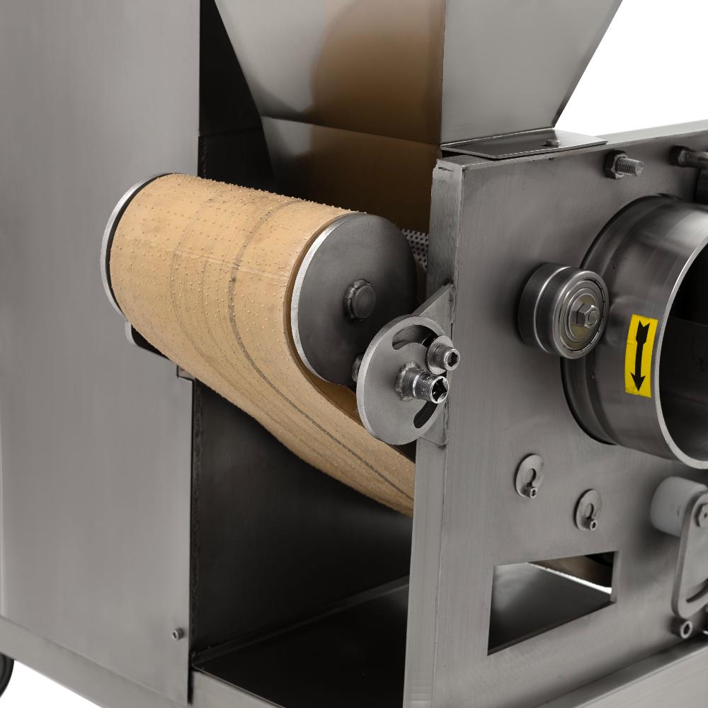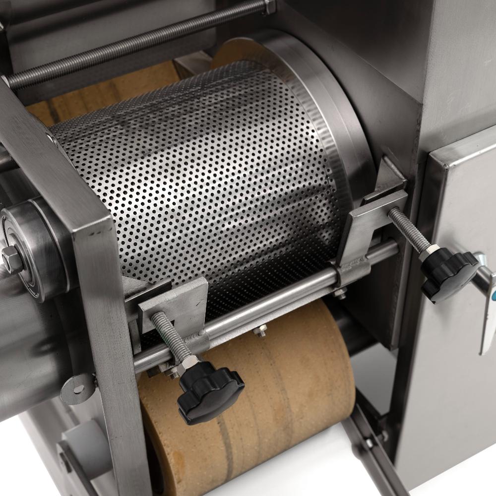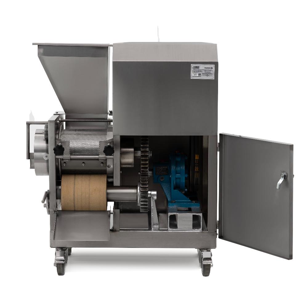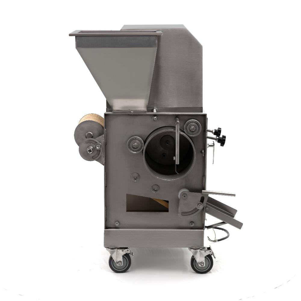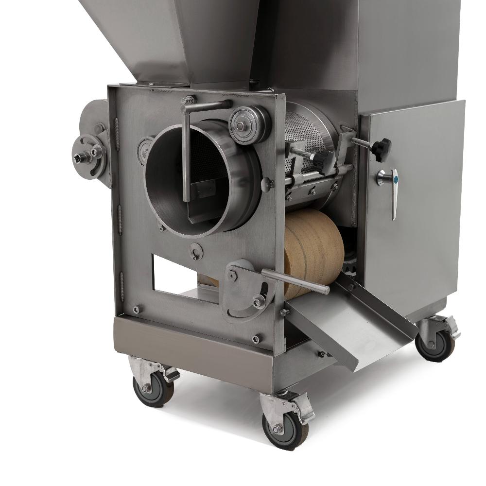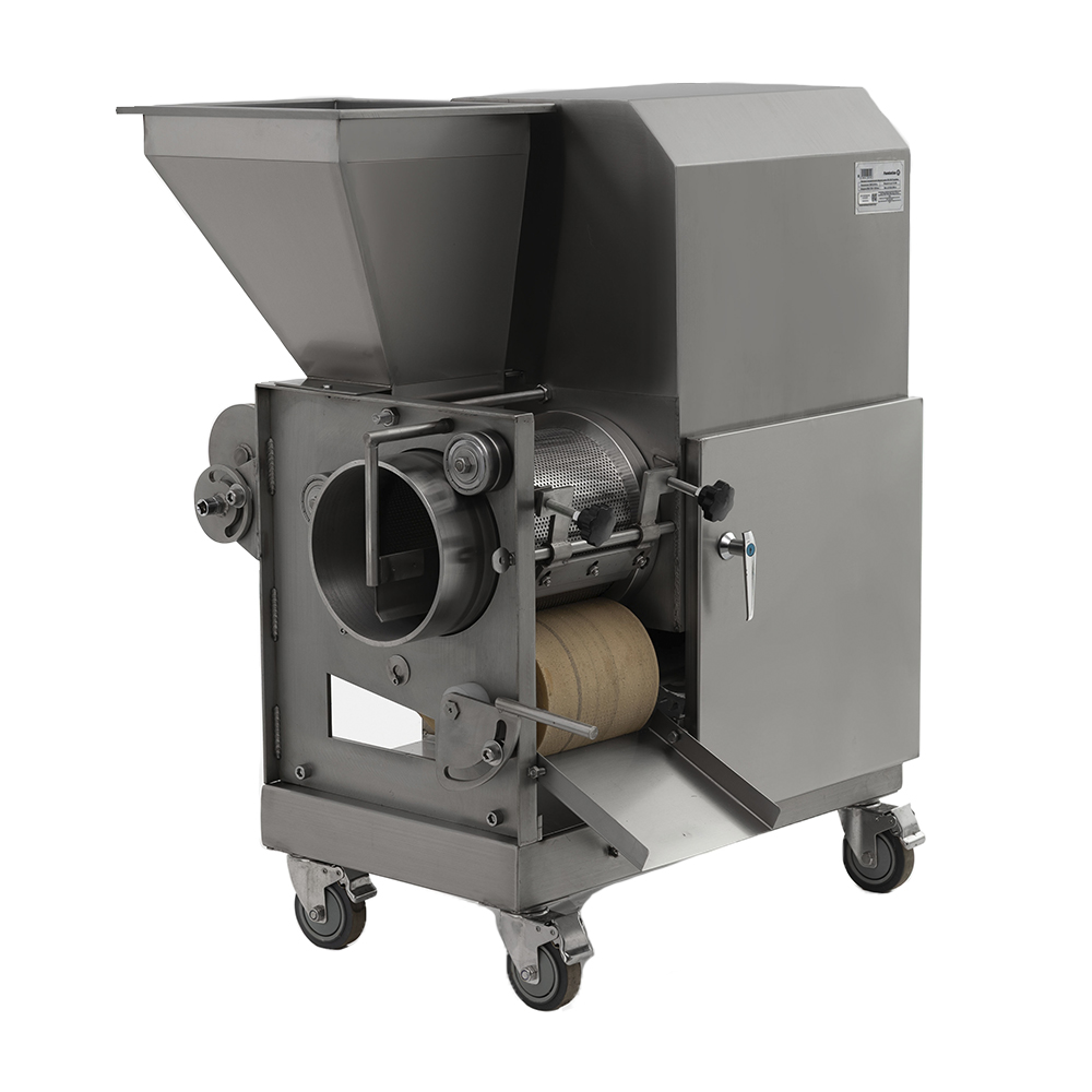 Неопресс механической обвалки рыбы CRJ-200 Foodatlas представляет собой сепаратор, с помощью которого происходит отделение мяса от костей и шкуры. Тушки рыбы без голов и внутренностей протягиваются между перфорированным барабаном и мяльной лентой, где мясо выпрессовывается через мелкие отверстия барабана. Отходы выходят через специальное отводящее отверстие. Фарш получается однородным, без посторонних включений.