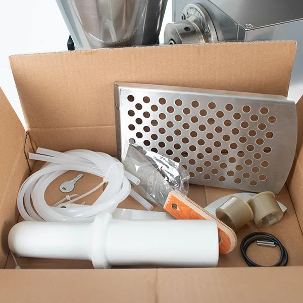 - Корпус тестоузла выполнен с дополнительным водяным охлаждением. Данный узел может сильно нагреваться за счет трения крутого теста даже при формировании средней толщины "тестовой трубки". Необходимо подключение к водоснабжению.