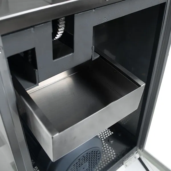 - Электрический щит управления закрывается на ключ, что исключает доступ неавторизованного персонала. Короб защищает от попадания в узел посторонних включений (мука, грязь, вода и т.д.).